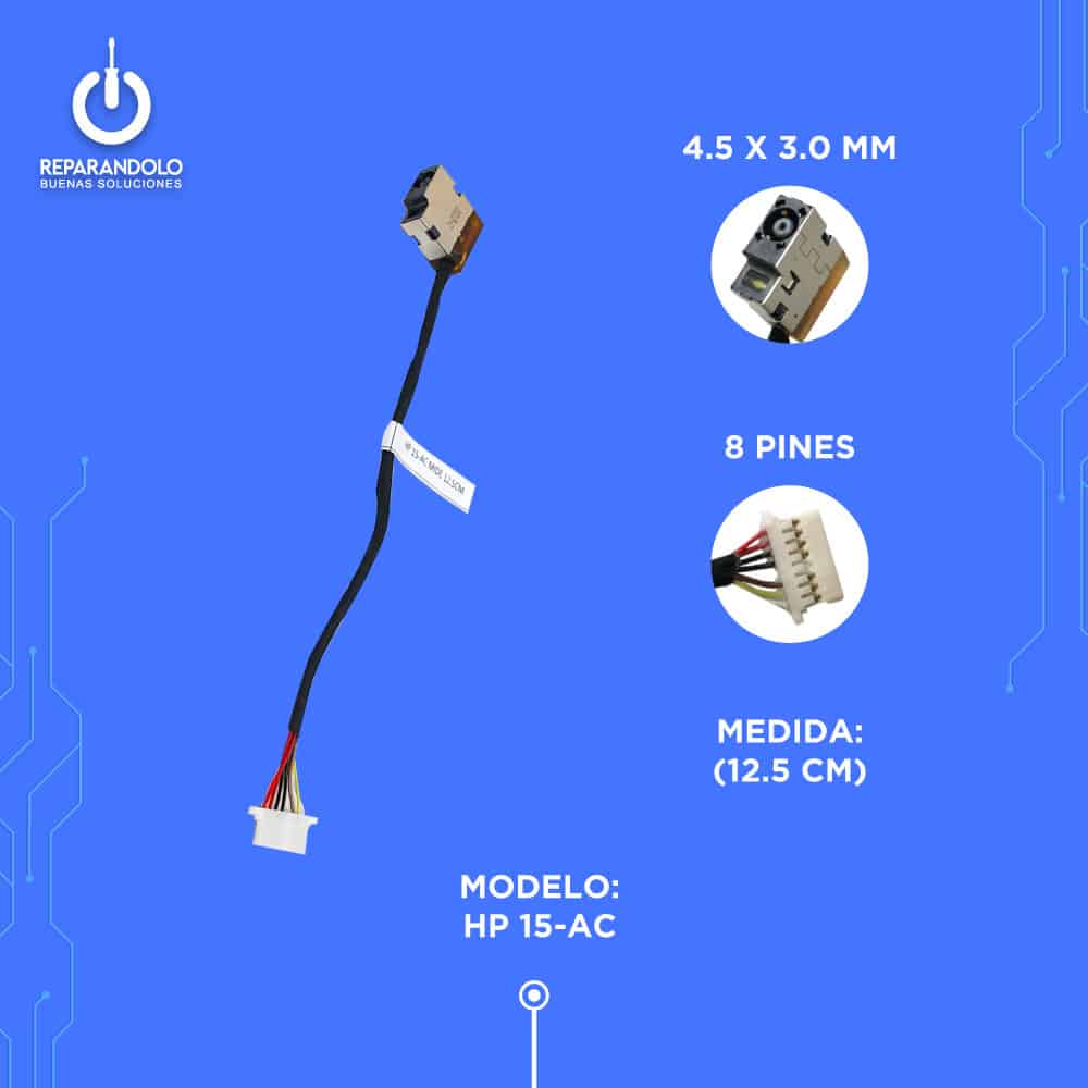 Modelo: Pin de Carga (DC Jack/Conector de Alimentación) para laptop.